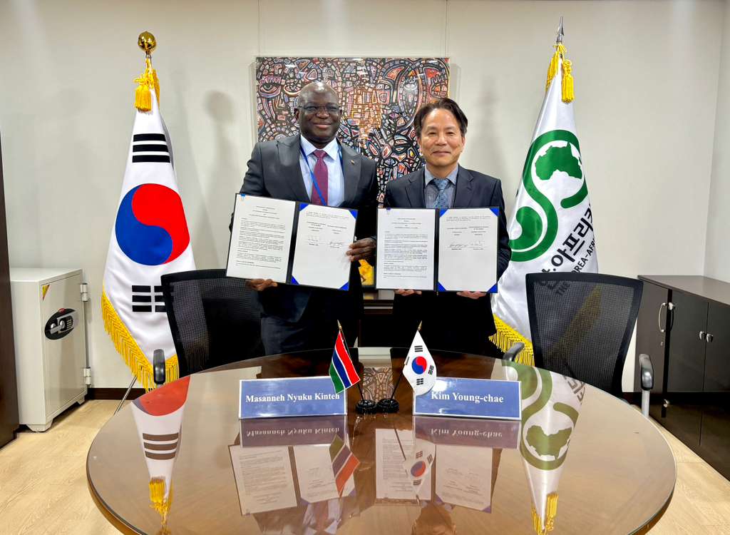 ๐๐€๐๐‰๐”๐‹, ๐Ÿ๐ŸŽ๐ญ๐ก ๐๐จ๐ฏ๐ž๐ฆ๐›๐ž๐ซ ๐Ÿ๐ŸŽ๐Ÿ๐Ÿ“: On Tuesday, November 4th, the Government of The Republic of The Gambia, represented by H.E. Ambassador Masanneh N. Kinteh, and the Korea-Africa Foundation (KAF), led by President Kim Young-chae, signed a Memorandum of Understanding (MOU) at the KAF office in Seocho-gu, Seoul. The MOU was signed on the margins of the Korea-Africa Senior Officialsโ€™ Meeting (SOM), under the initiative of the Ministry of Foreign Affairs of the Republic of Korea, with a focus on capacity building, youth empowerment, trade promotion, and the enhancement of The Gambiaโ€™s digital infrastructure. Through this agreement, both parties will collaborate in areas including: โ–ชYouth employment and skills development โ–ชPromotion of trade and investment โ–ชSupport for digital transformation and improved public services โ–ชCapacity building and knowledge exchange A central aim of the partnership is to strengthen bilateral digital cooperation, including creating networks between Korean and Gambian enterprises to support The Gambiaโ€™s digital transition. This MOU reflects The Gambia and Koreaโ€™s commitment to practical collaboration for mutual growth, reinforcing solidarity and sustainable development between theย twoย nations.