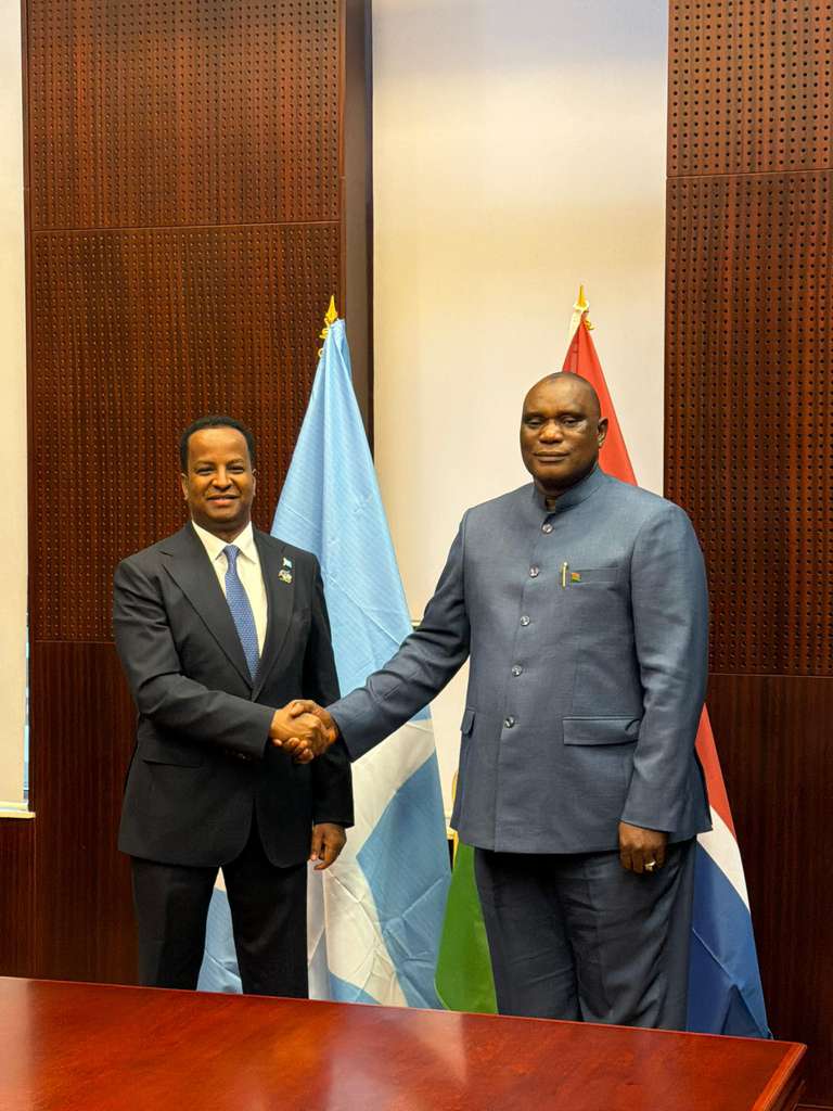 ๐๐€๐๐‰๐”๐‹, ๐Ÿ๐Ÿ—๐ญ๐ก ๐Œ๐š๐ซ๐œ๐ก ๐Ÿ๐ŸŽ๐Ÿ๐Ÿ”: On 27th March 2026, the Honourable Minister of Foreign Affairs, International Cooperation and Gambians Abroad, His Excellency Sering Modou Njie, held a bilateral meeting with his Somali counterpart, His Excellency Abdisalam Abdi Ali, Minister of Foreign Affairs and International Cooperation of the Federal Republic of Somalia. The meeting took place on the sidelines of the 11th Summit of the Organisation of African, Caribbean and Pacific States (OACPS) in Malabo, Republic of Equatorial Guinea. During the discussions, the two Ministers exchanged views on issues of mutual interest, including strengthening bilateral relations and enhancing cooperation within multilateral frameworks. Both sides reaffirmed their commitment to deepening collaboration for the mutual benefit of their respective countries and peoples.
