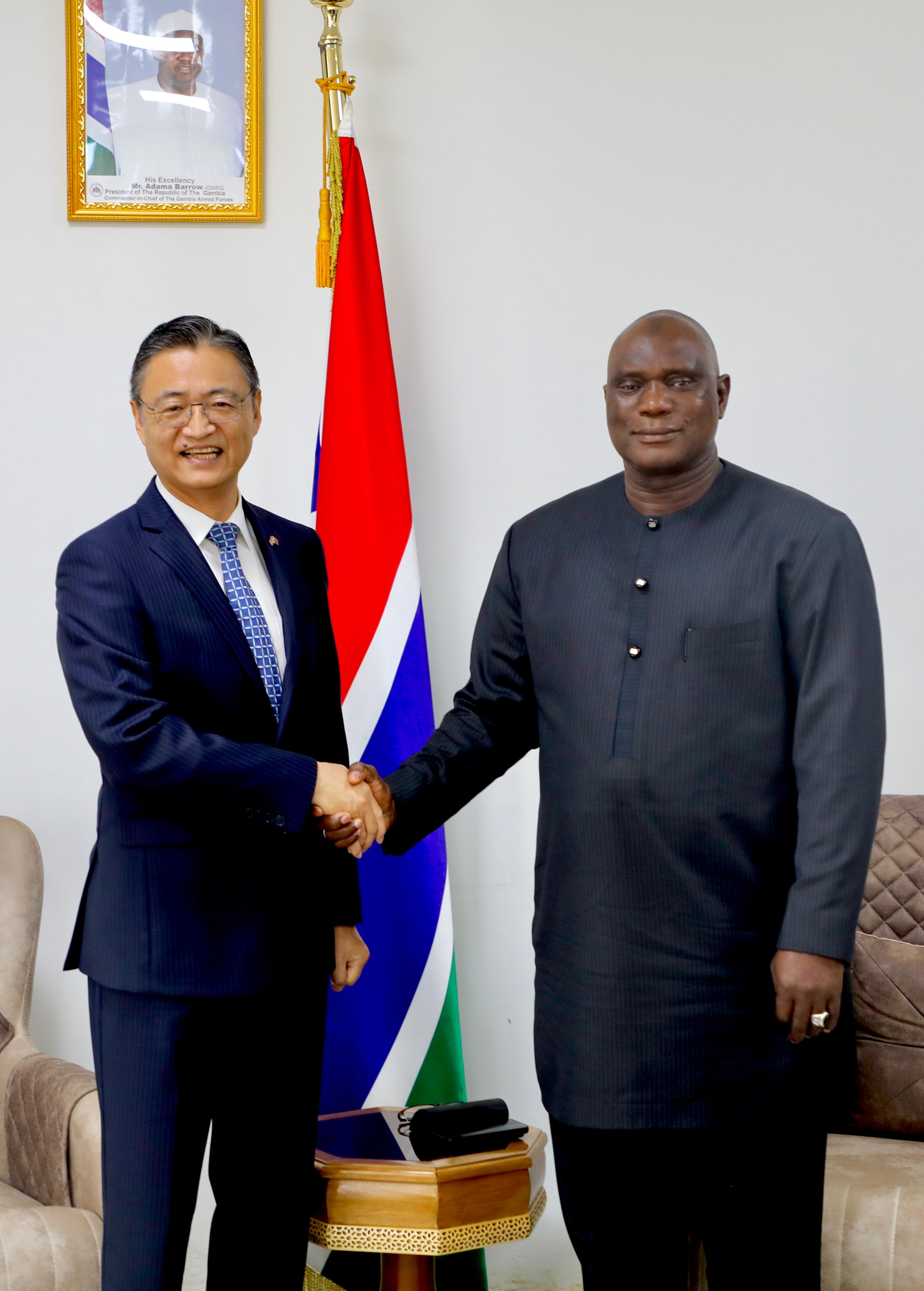 In a discussions with Ambassador Liu Jin, Minister Njie thanked him for China’s continued support in infrastructure, health, education, agriculture, and human resource development. The two sides reviewed existing cooperation and identified new opportunities to strengthen bilateral relations for the mutual benefit of both countries and their peoples.
